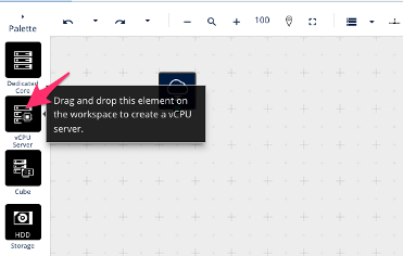 3. Wählen Sie einen vCPU Server aus und ziehen Sie diesen per Drag and Drop in Ihren Arbeitsbereich, um die virtuelle Maschine (VM) zu erstellen.