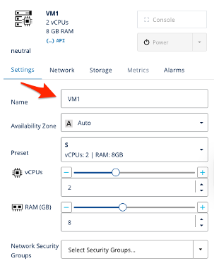 1. Wählen Sie Ihre neue VM aus. Der Inspektorbereich (Inspector pane) wird angezeigt. Geben Sie im Textfeld Name einen Namen für Ihre VM ein.