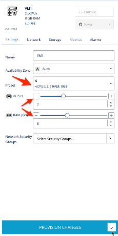 8. Klicken Sie auf Provision Changes (Änderungen bereitstellen), um die Einrichtung der VM abzuschließen