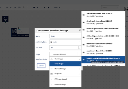 5. Wählen Sie im Menü Image die Option Own Images (Eigene Images) aus. Wählen Sie dann Ihr hochgeladenes genubox virtual NO-Serial-Image aus.