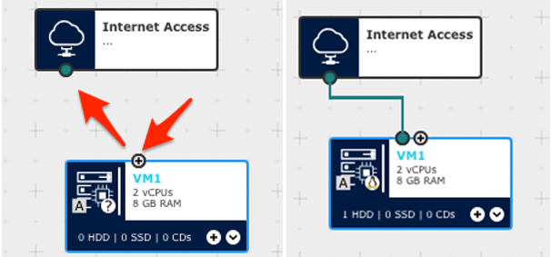 7. Verbinden Sie Ihre VM mit dem Internet. Ziehen Sie dazu eine Linie von der VM zum Internetzugang.